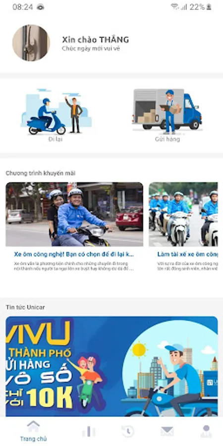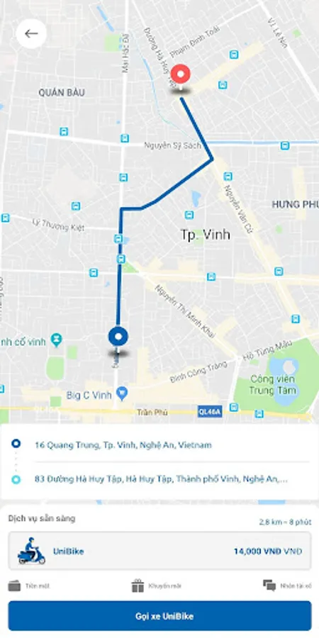 1. UniBike: The service connecting by motorbike (2 wheels) is integrated in the Unicar ride app, you just need to enter the destination and come on the app, the app will immediately find the nearest driver It is best for you to take you to your late place