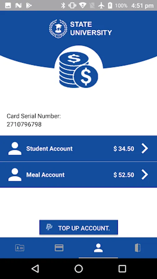 identityOne app enables user to download credentials and use it as an ID. It also allows the user to manage cards and topup accounts.
