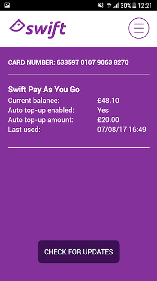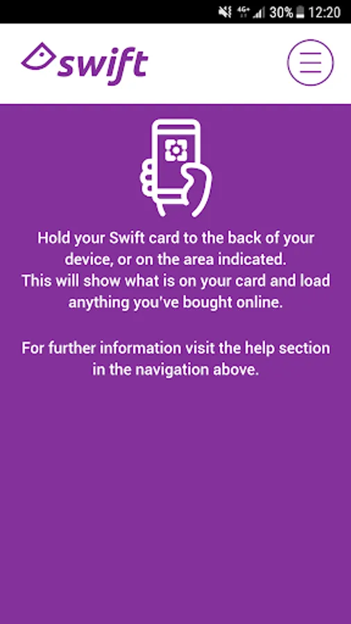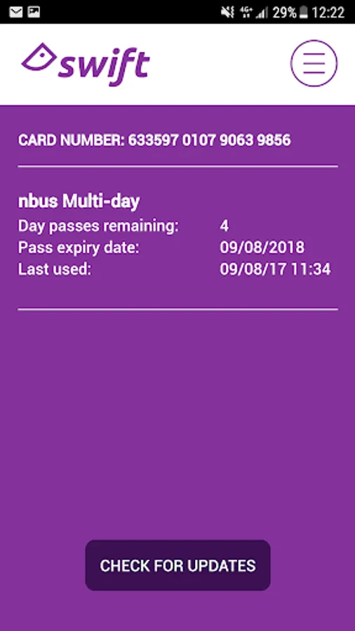 It’s really easy to use – just ensure your NFC and internet are switched on, then hold your Swift card to the back of your device. The app will tell you what products you already have loaded on your card. Just press the ‘Check for Update’ button to collect any top-ups or products you’ve bought online.
