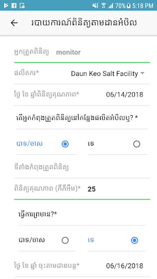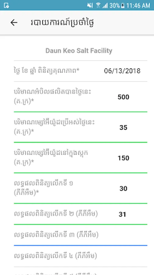 SALT App is a mobile App for enter daily iodization data at both producing site and monitoring site in Cambodia.