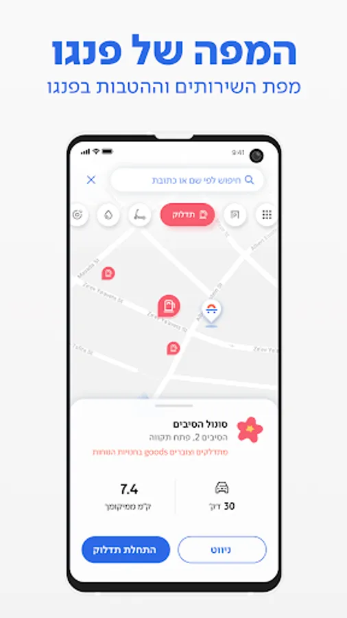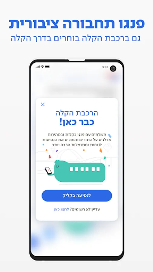 Pango, the leading smart transportation application for parking, vehicles and road in Israel, offers its 3 million customers comprehensive payment solutions that make the road easier and more convenient. Pango centralizes the transportation payments and related services that drivers and passengers need in one place. The application allows payment for parking in all local authorities and in hundreds of parking lots throughout the country, payment for fuel filling as well as for shopping at Sonol's convenience stores, payment for using public transportation (including travel by bus, train, Carmelit and light rail), payment for travel on toll roads, payments concerning for car washing and rescue services. In addition, the company provides complementary services to its customers who own vehicles, including collection for testing and car care and insurance. With Pango you save time and money and enjoy advanced services directly from your mobile.