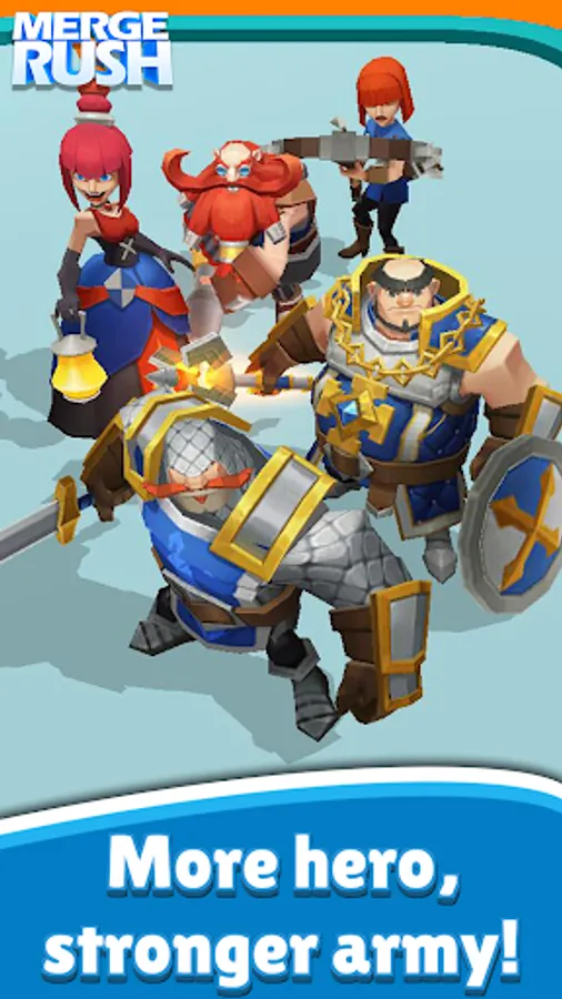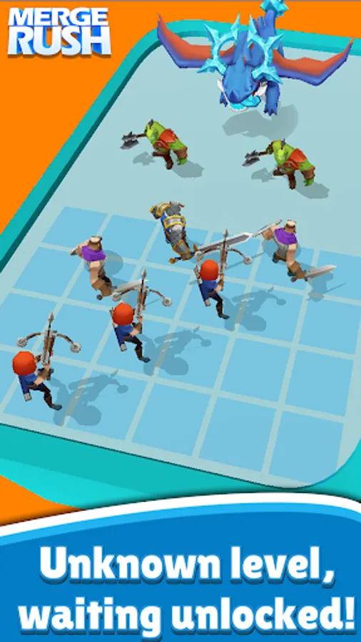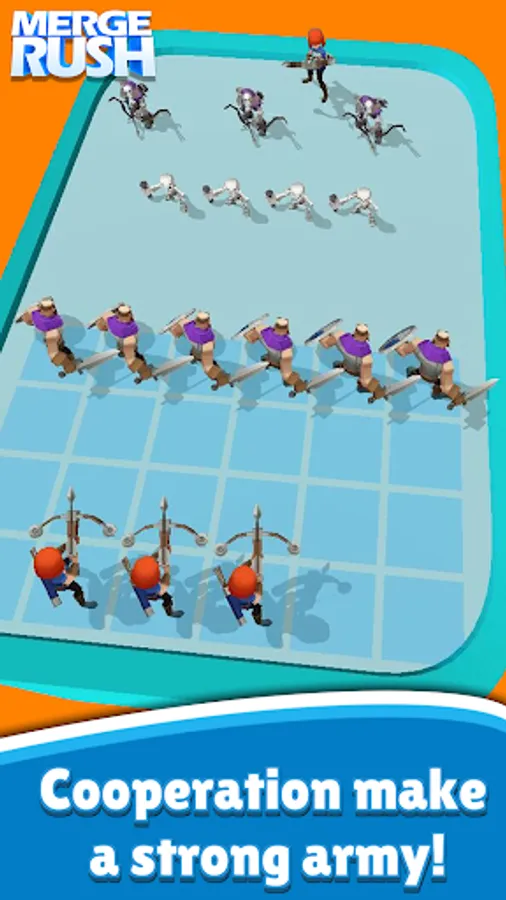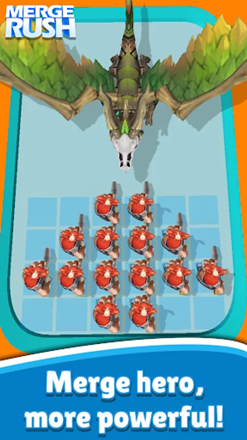Merge Rush is a fun game with merge game play. Merge fighters of lower level to get higher level and become stronger to win the battles.