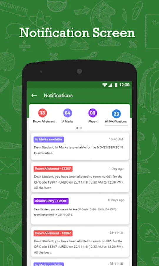 download alert, room allotment alert, results announcement etc through this