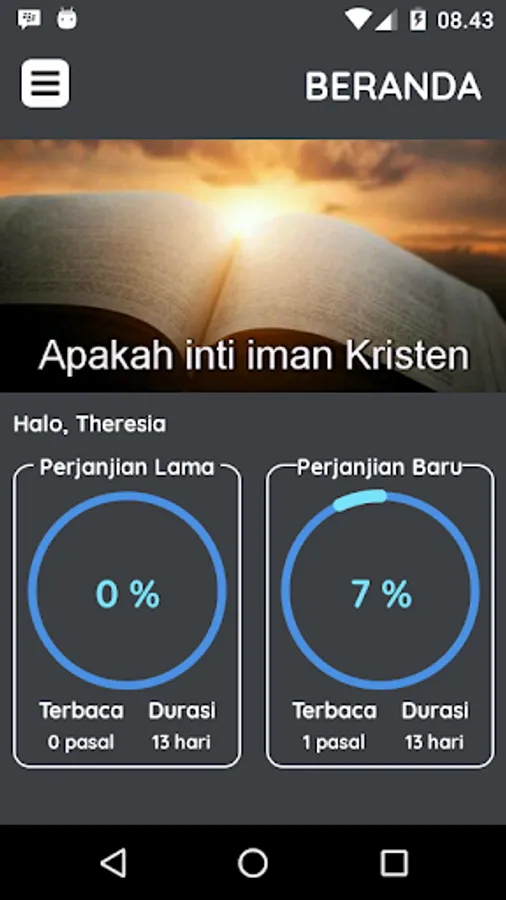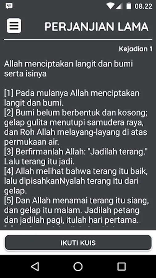 This application can function as a Bible and Bible Quiz so that users can review what has been read. Users can also monitor how the user is logged in and you have read how chapter. Yukk deepened our knowledge of the Bible with this application.