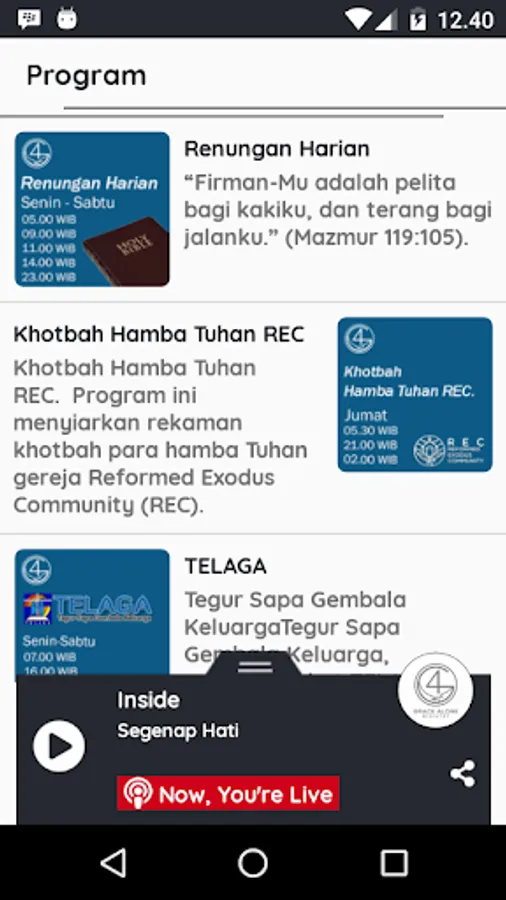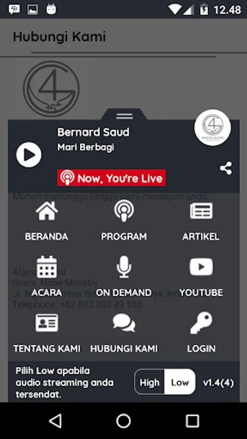 Grace Alone Radio is a radio broadcast provider application that also provides various features, such as: