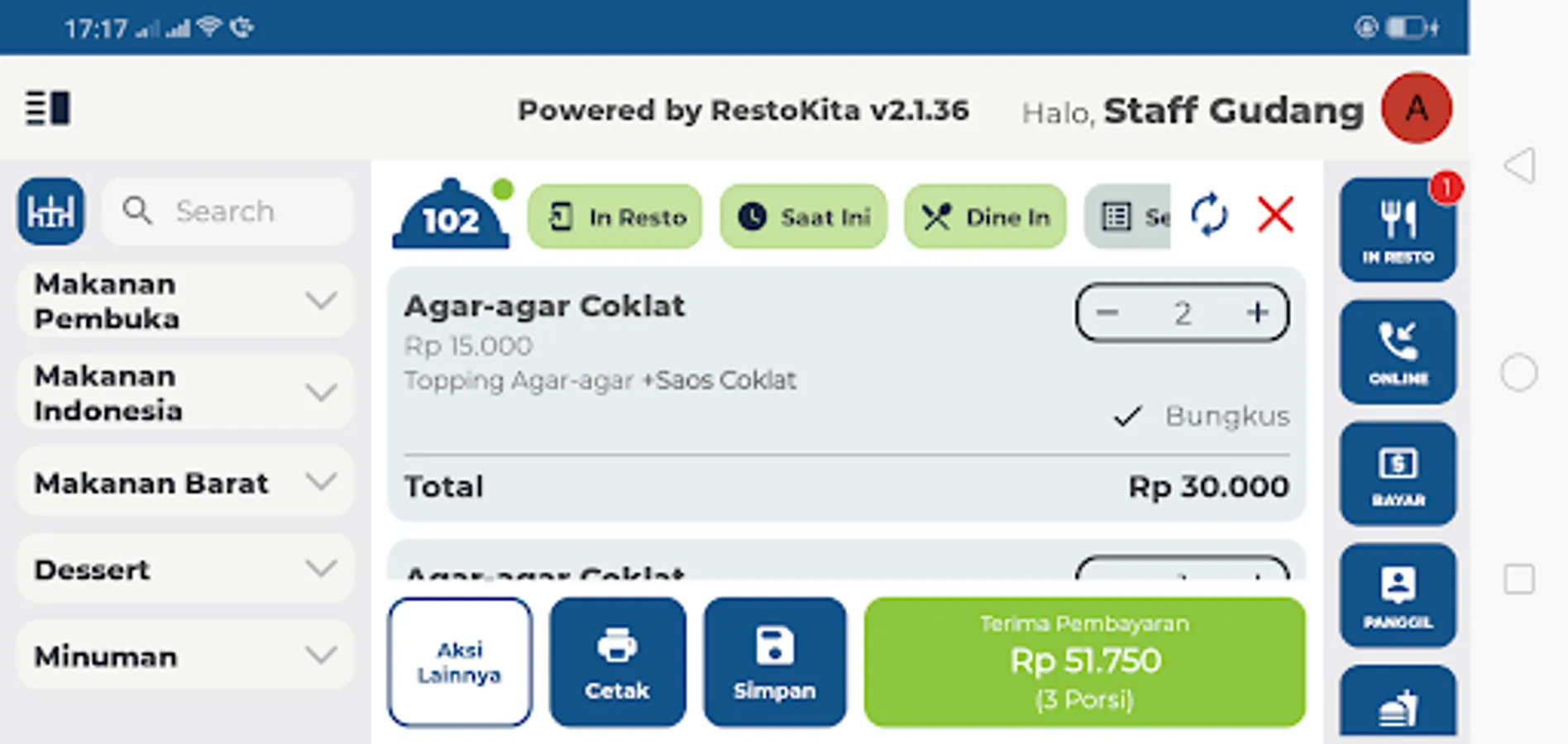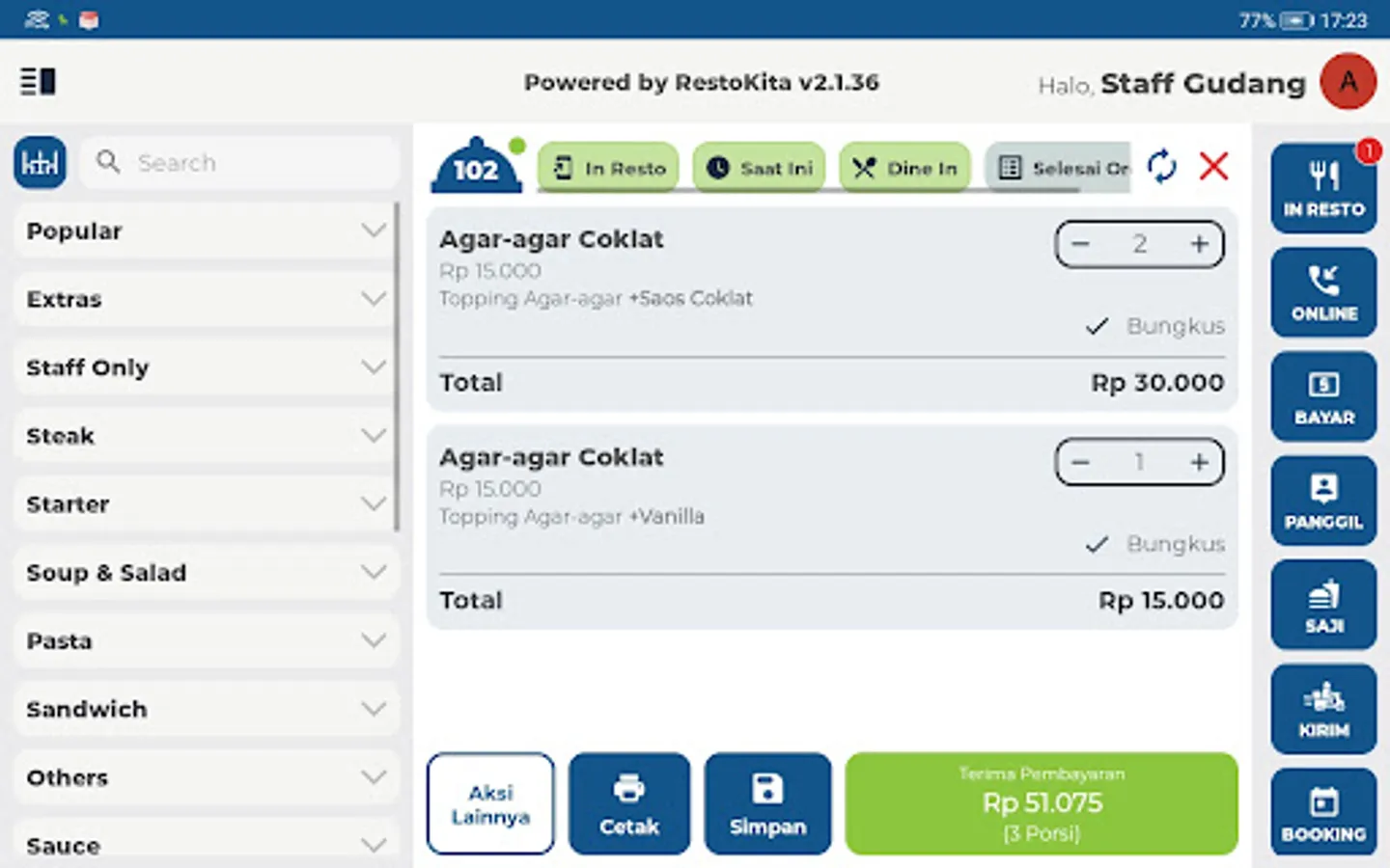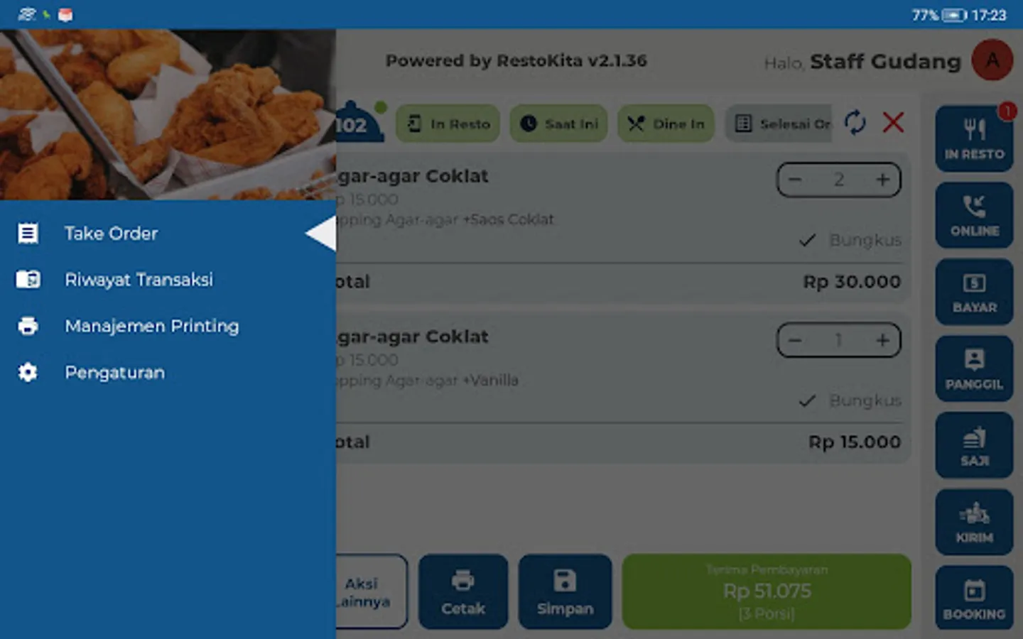 Restokita provides convenience for your restaurant management. Restokita provides many conveniences for users. Starting from using the Cashier application, Waiter application, Kitchen application and Admin application. You can choose which features suit your restaurant.