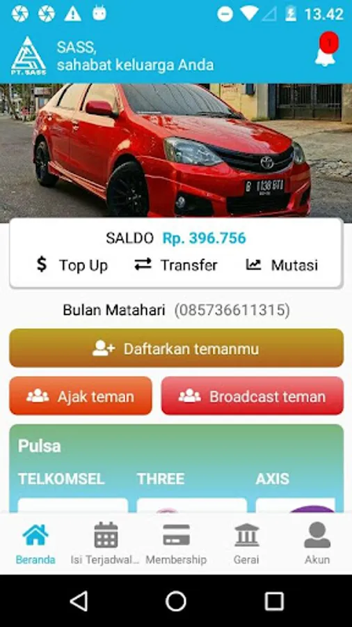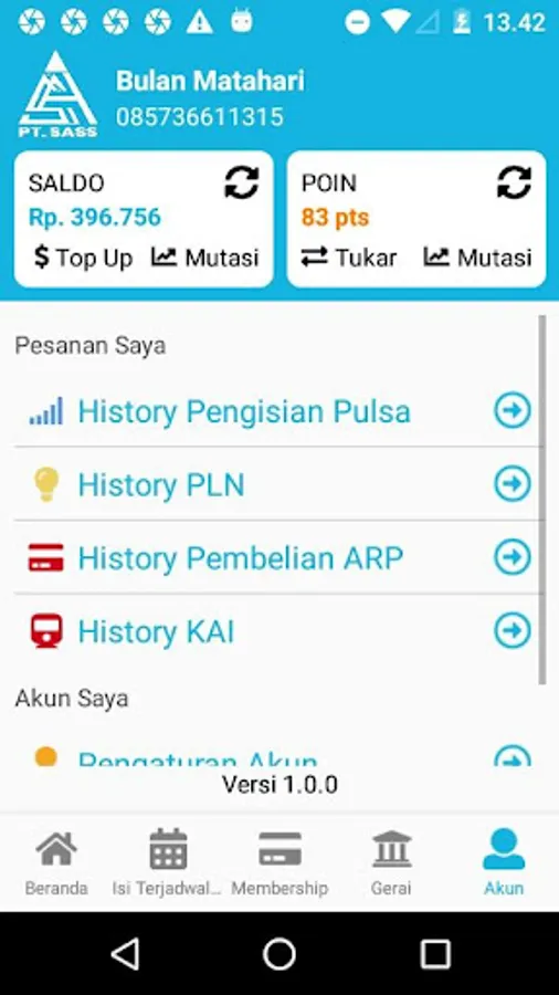 SASS is an application that makes it easy for users to purchase credit, data packages and PLN payments. This application can also schedule credit purchases every month.