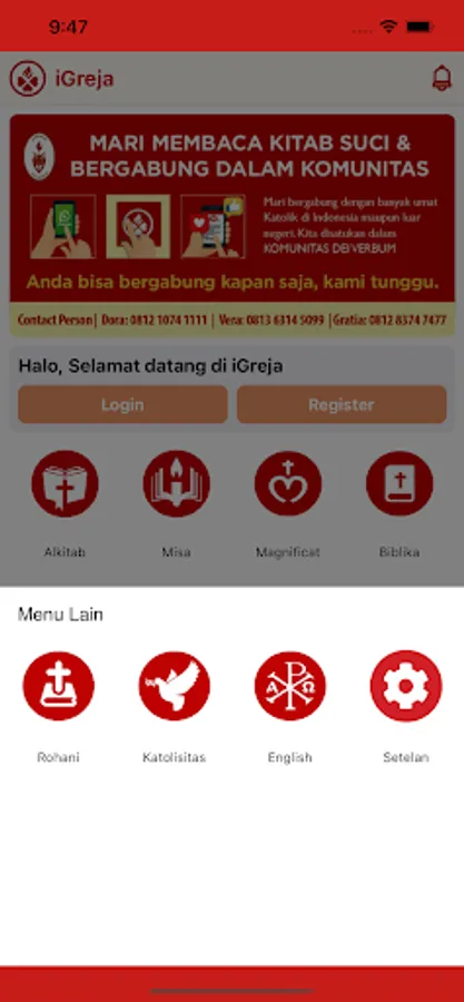 There are many menus in this application. Let us grow as a community of God's people by drawing on the spiritual riches of the Church.