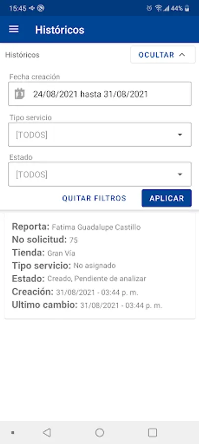 The application allows you to create maintenance requests which will be sent to the maintenance area for follow-up.