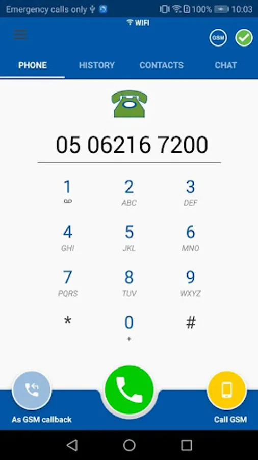 - GSM mode (Automatic redirect to your GSM number, especially for areas with bad data connection)