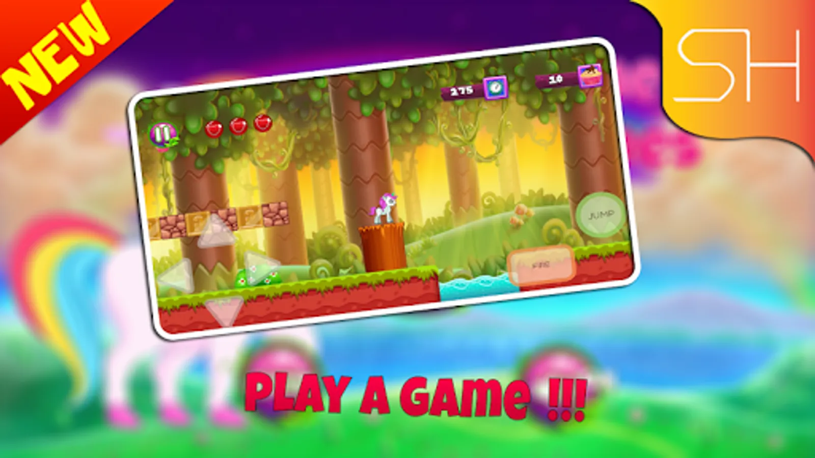 - Tap anywhere on the screen to make a little unicorn pony fly and jump.