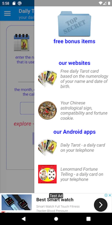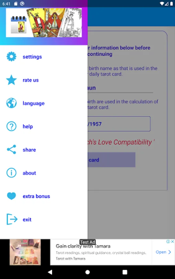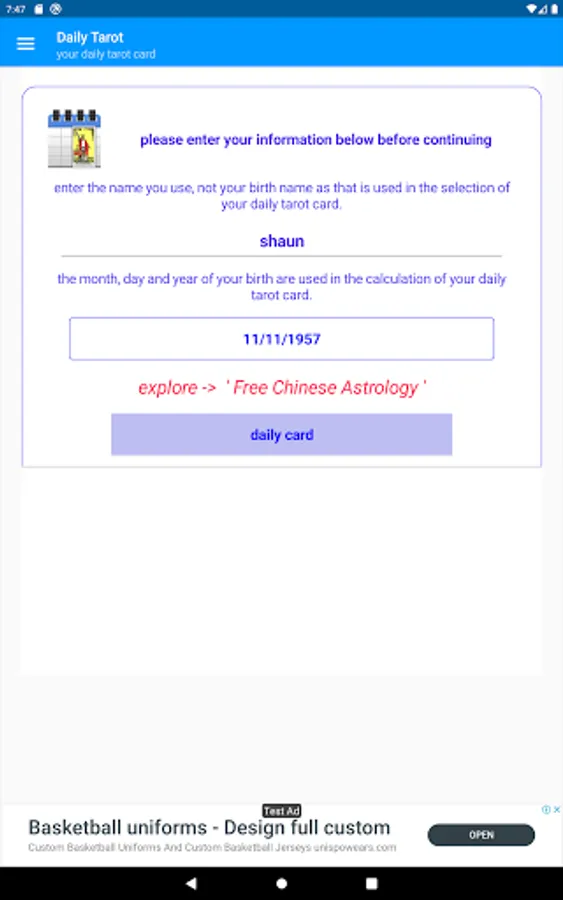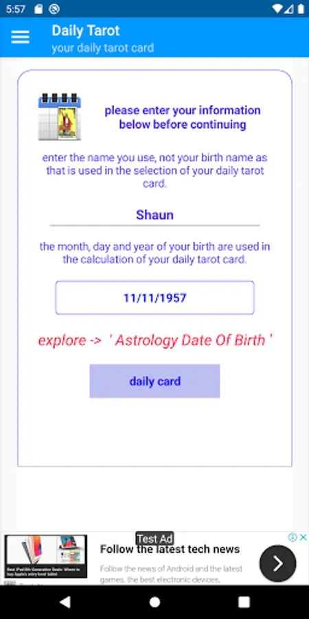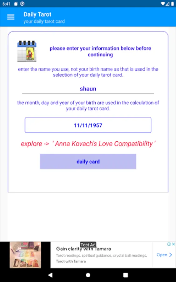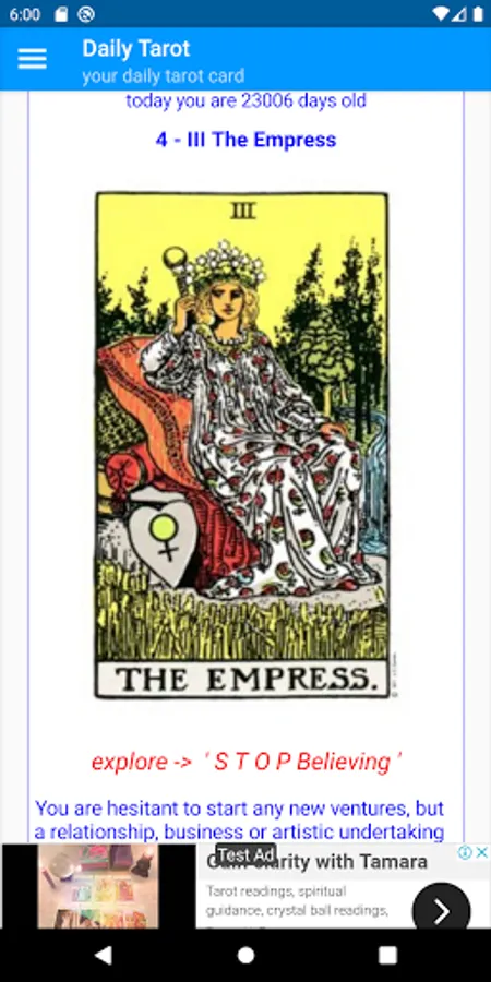 Along with your daily tarot card, you will also find out what day you were born on and how old you are in days.