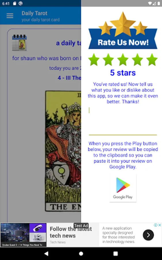 Use the app to get answers to the questions you face in your daily life. This app uses all 78 tarot cards (Major and Minor Arcana) to give insight into not only the day-to-day challenges you face, but also gives answers to your deeper emotional and spiritual questions.