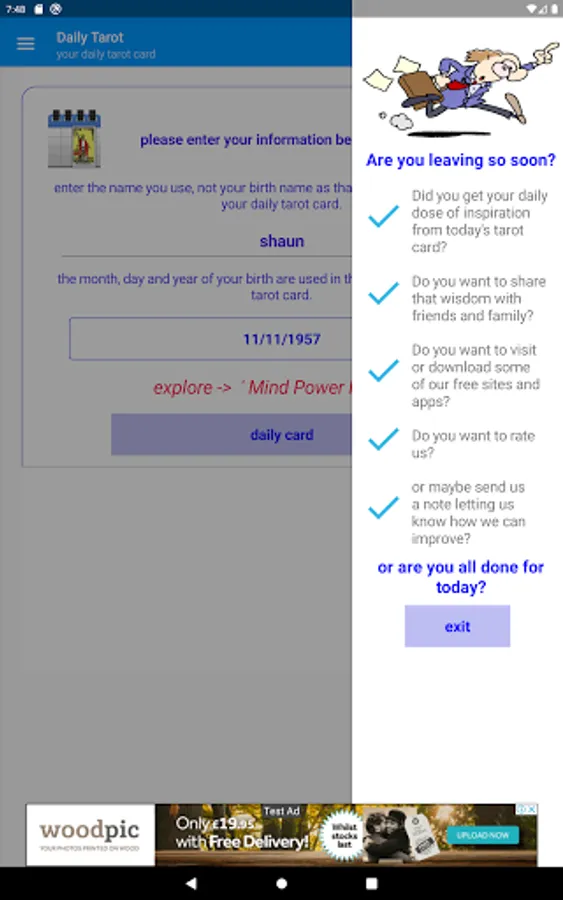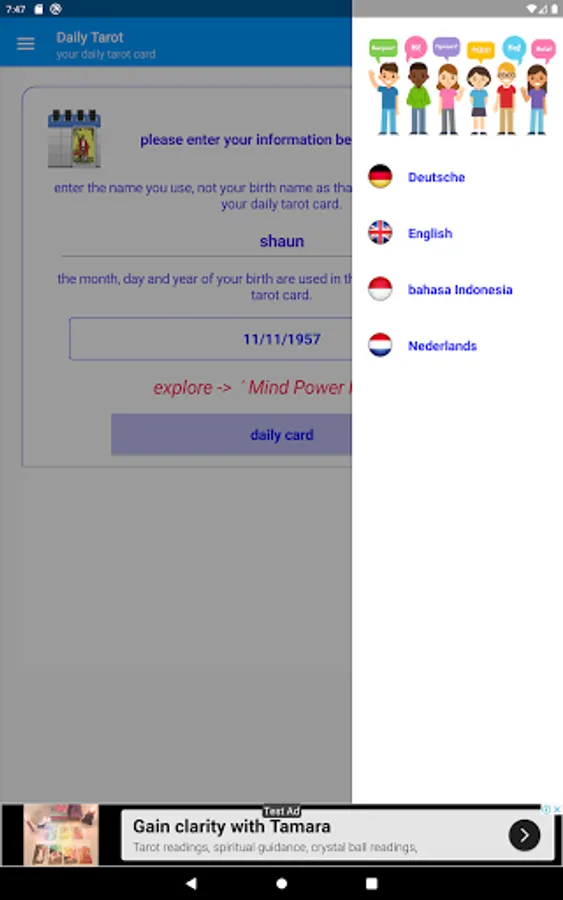 Are you looking for answers? Use the daily tarot card app to gain more insight into what's happening on a daily basis. Get a daily tarot card reading on your phone or tablet based on the numerology of your name, date of birth and of course today.