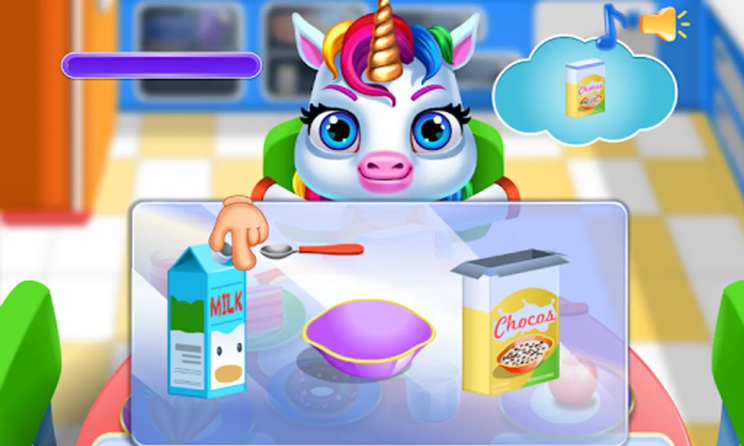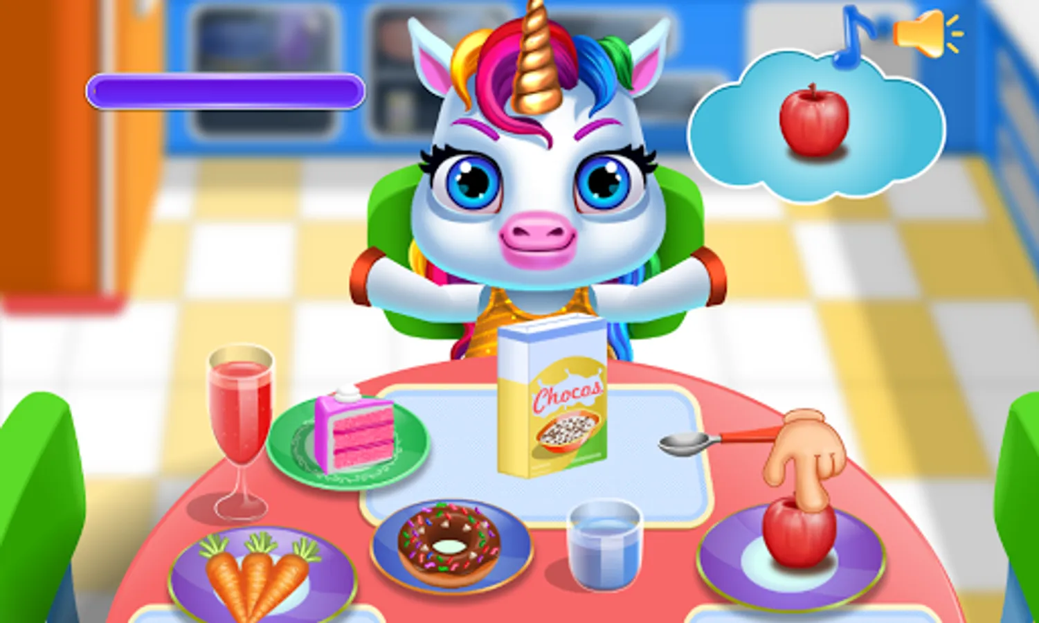 - Unicorn pony feeding: enjoy with a little pony to feed it different foods and make it fruit juice.
