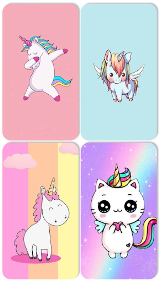 Some of the collections included inside of this application are as following; unicorn wallpaper, cute wallpaper, girly m wallpaper, kawaii wallpapers, fofos wallpaper... and some more.
