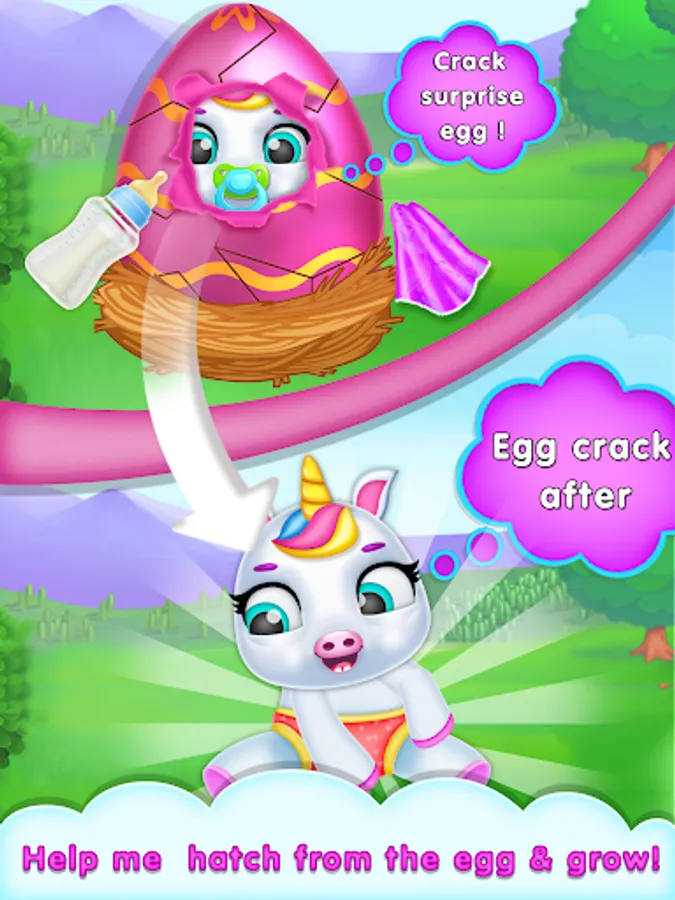 You have chocolate/surprise egg to Crack or hatch! Watch a tiny animal baby hatch and get ready to babysit baby unicorn and take care of the newborn baby unicorn!