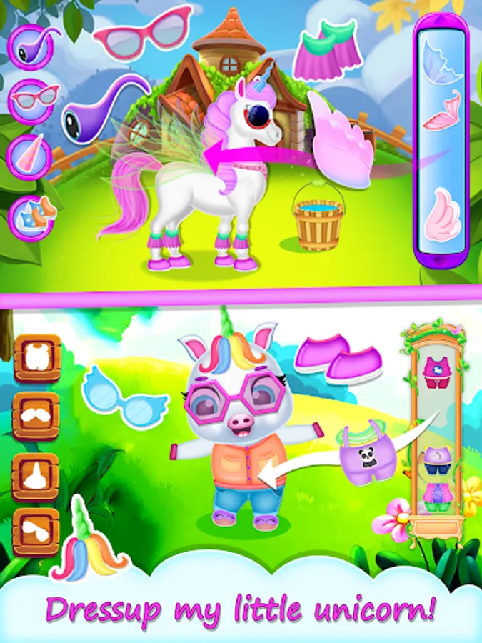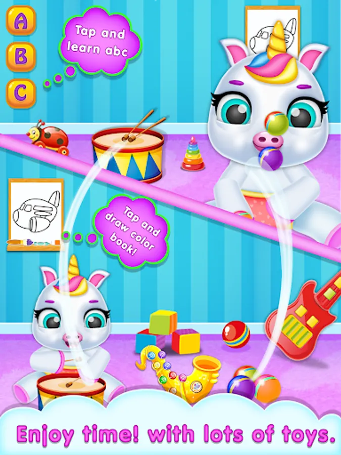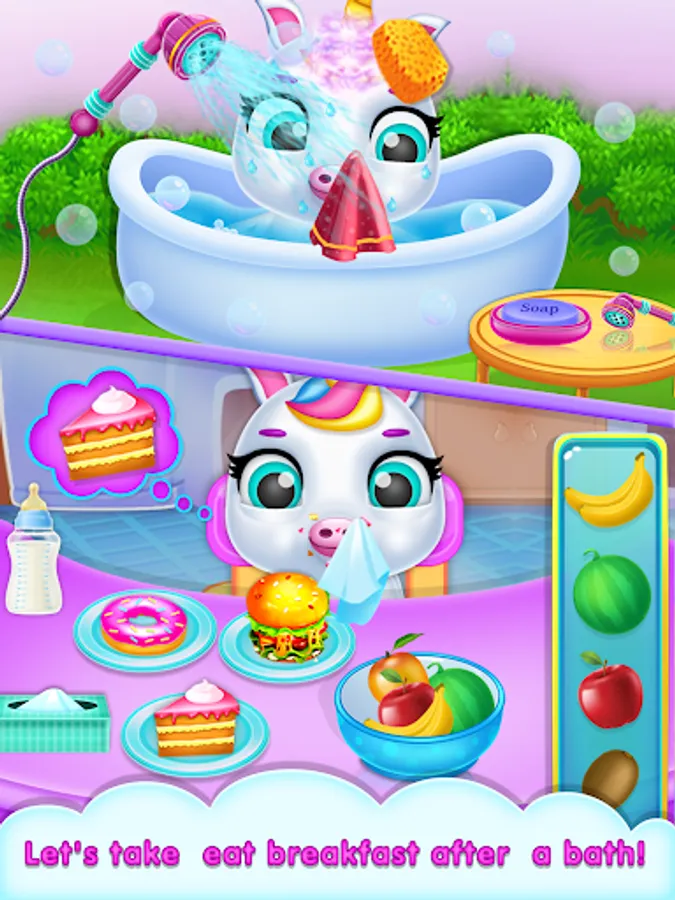 Watch your virtual unicorn grow ,Take good care of the little baby unicorn : feed, bathe, dress up and play!