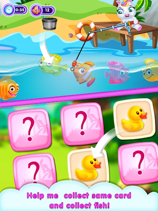 Exercise your brain and sharpen your memory with Puzzle, Alphabet Shadow Match, Memory Match including fishing, jumping on the stones, fruit Sorting, jumping for fruits, catch toys and takes fun.