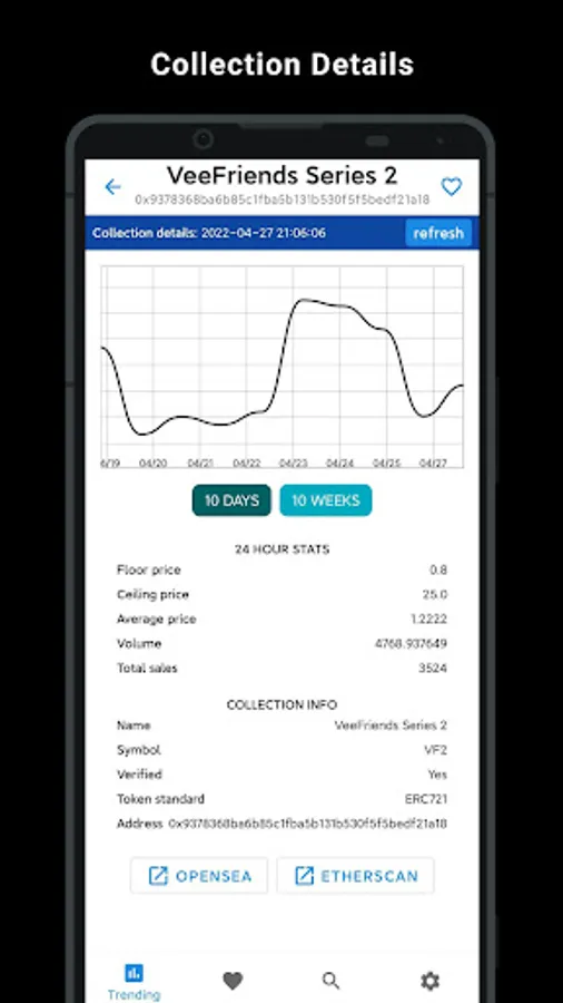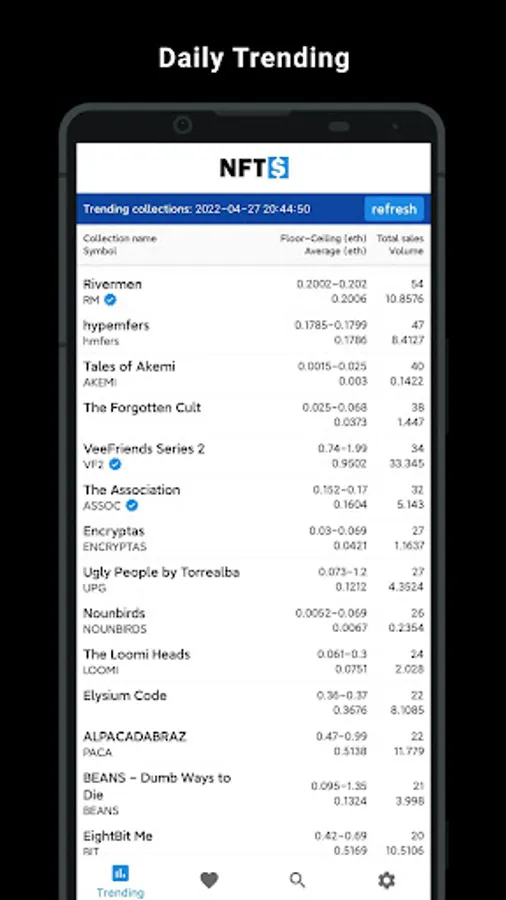 NFT price is designed for NFT flippers and NFT Collectors. It shows daily trending collections, watchlist, price chart and token details.