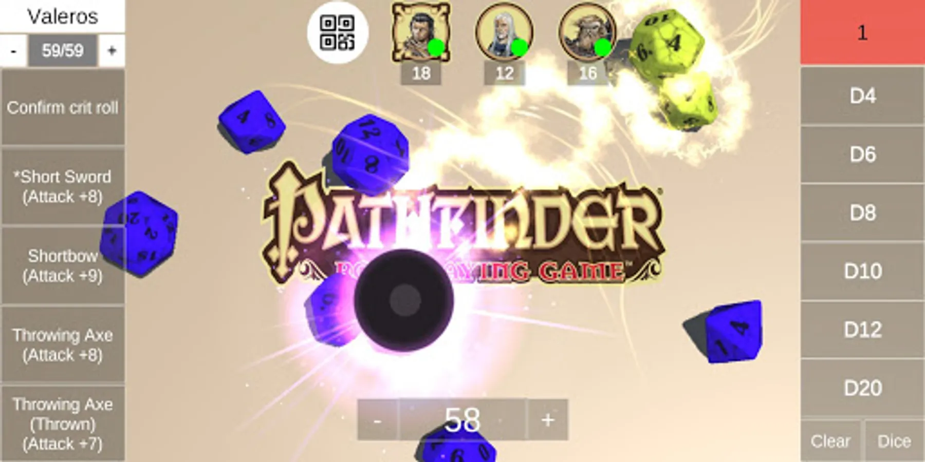 * Never lose a die with the Dice Roller