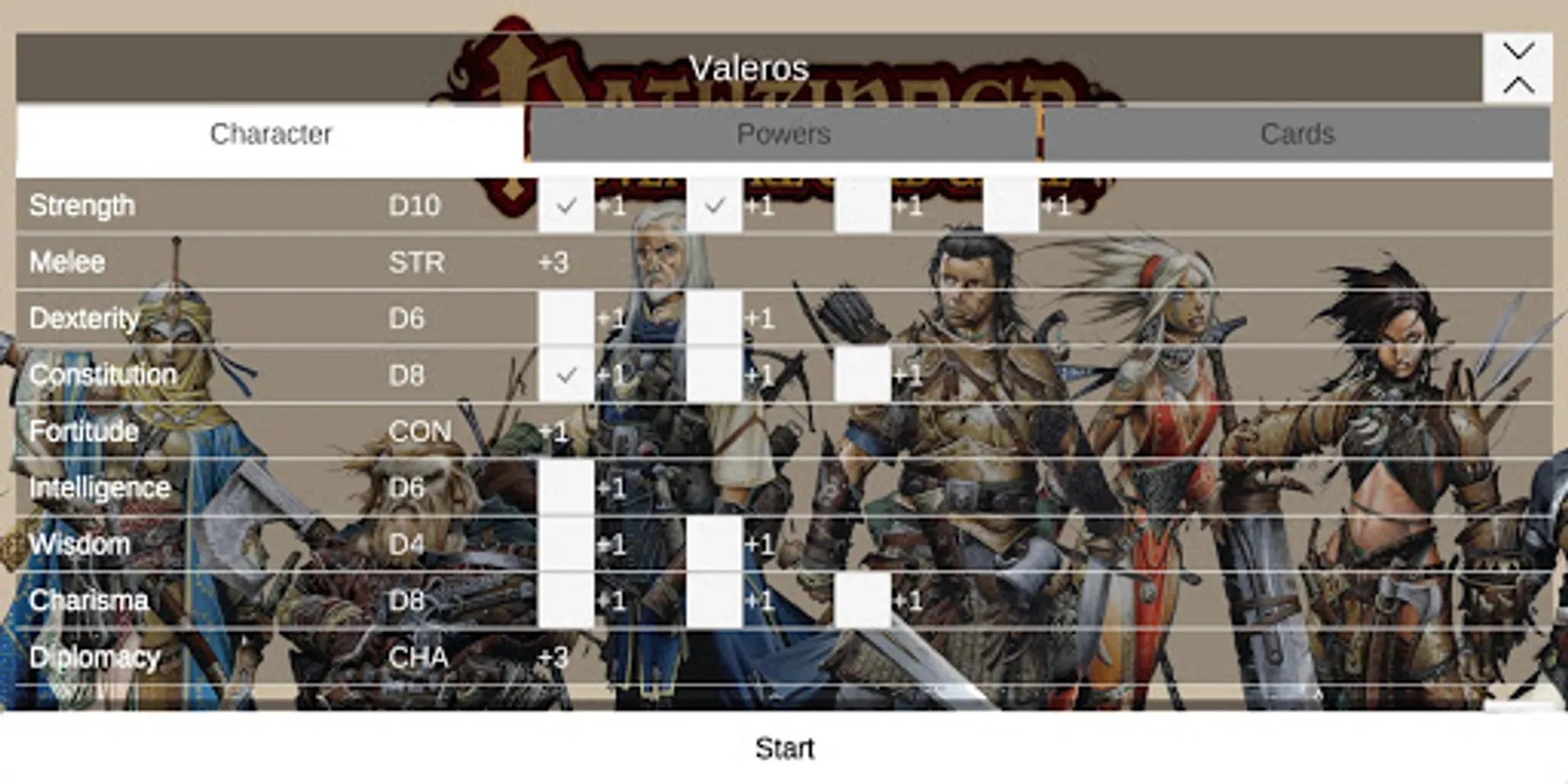 * Track character skills and attributes