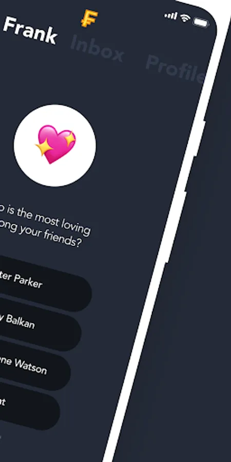 With Frank, you'll never run out of fun and engaging ways to interact with your friends. Say goodbye to boring chats and hello to exciting questionnaires! Our app is designed to help you get to know your friends better by asking you to answer questions about them. You'll be surprised at how much you can learn about your friends with just a few taps!