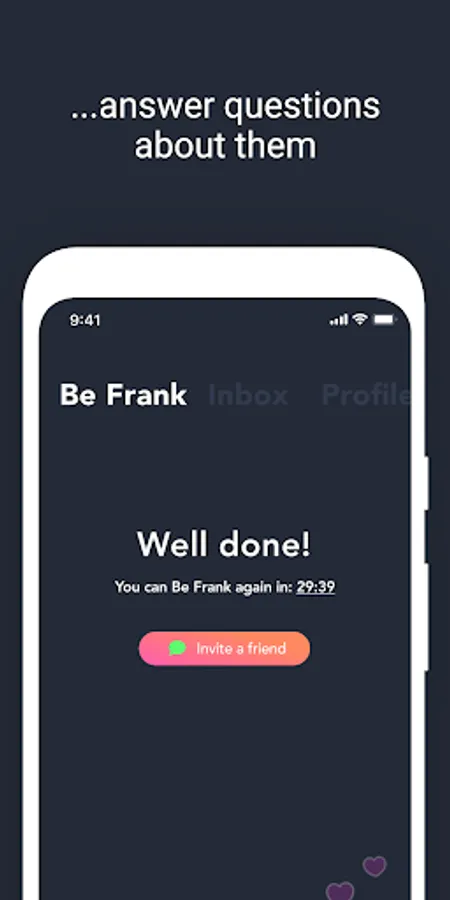 But that's not all! Frank also allows you to compete with your friends to see who knows each other best. You can earn points for every correct answer and climb the leaderboard to become the ultimate Frank champion!