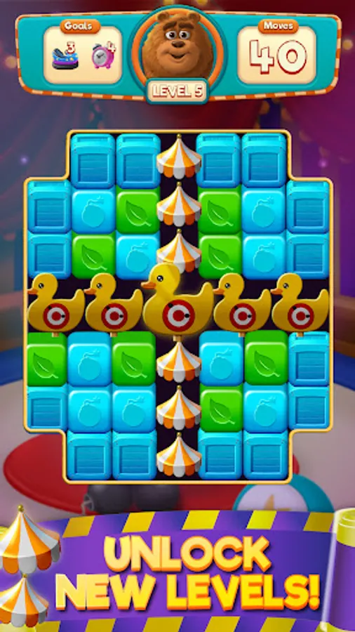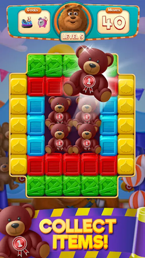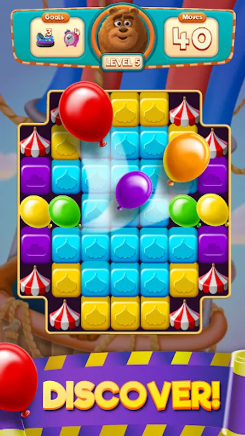 Join Bob the Bear and Mick the Mouse as they travel around a funfair full of surprises. They are the kings of the carnival castle. From dangerous roller coasters to playful carousels, they visit all kinds of attractions. The bear games with his friends and looney toons will be all around him. Start playing Blast Friends – Match three Puzzle and become friends with these funny toon characters and be part of the royal carnival family.