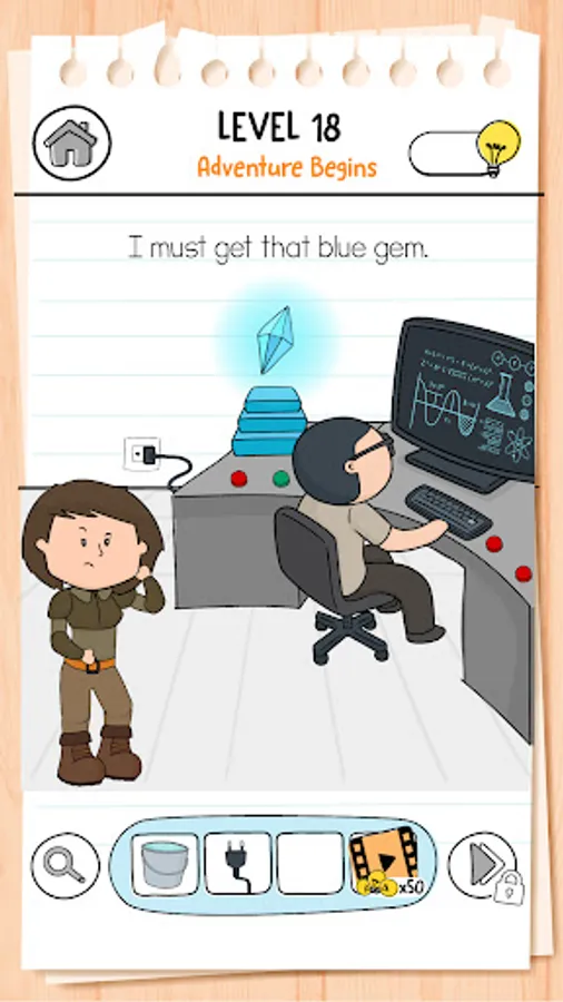 Brain Test 3 introduces a complex building system as you will build Alyx’s workshop and gradually develop it. There are idle resource generators which will help you in your tricky adventures. The workshop is filled with epic tools and machines for you to discover.