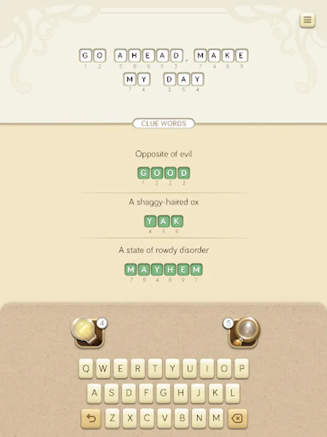 Solving brain puzzles becomes a joy with our state-of-art letter typing technology that allows players to analyze and review the mystery of words and crosswords. Each letter is connected to the decrypted message, and you take the role of a high-IQ decipherer.