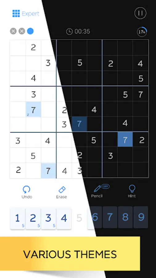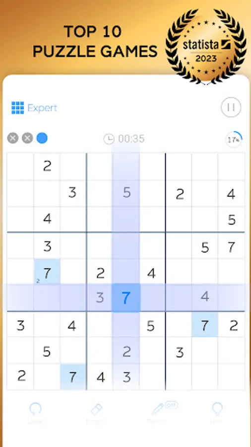 ● You can take notes to find the numbers easily as on paper. Each time you fill in a cell, notes are automatically updated!