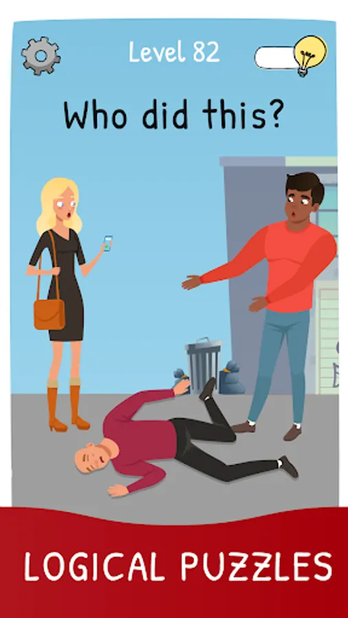 This mind game offers a great user experience with artistic and funny graphics and animations. You will play a variety of crazy riddles where you solve the problems such as who is a father and who is his wife. You will solve crimes, uncover hidden secrets, and complete complex puzzles by finding clues.