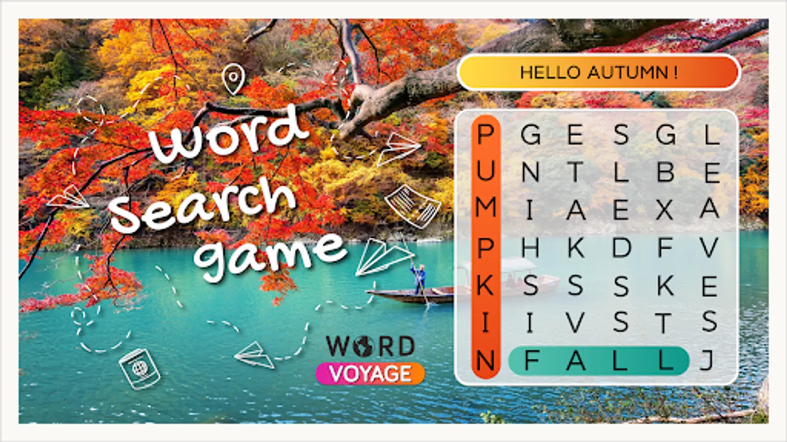 Develop new skills and increase your memory power with delightful word search problems. With thousands of addicting word search puzzle levels, you will not realize how fast time passes. Play the relaxing puzzles in your own time and enjoy beautiful sceneries. Unlock secret words and gain bonuses to use during your Word Voyage.