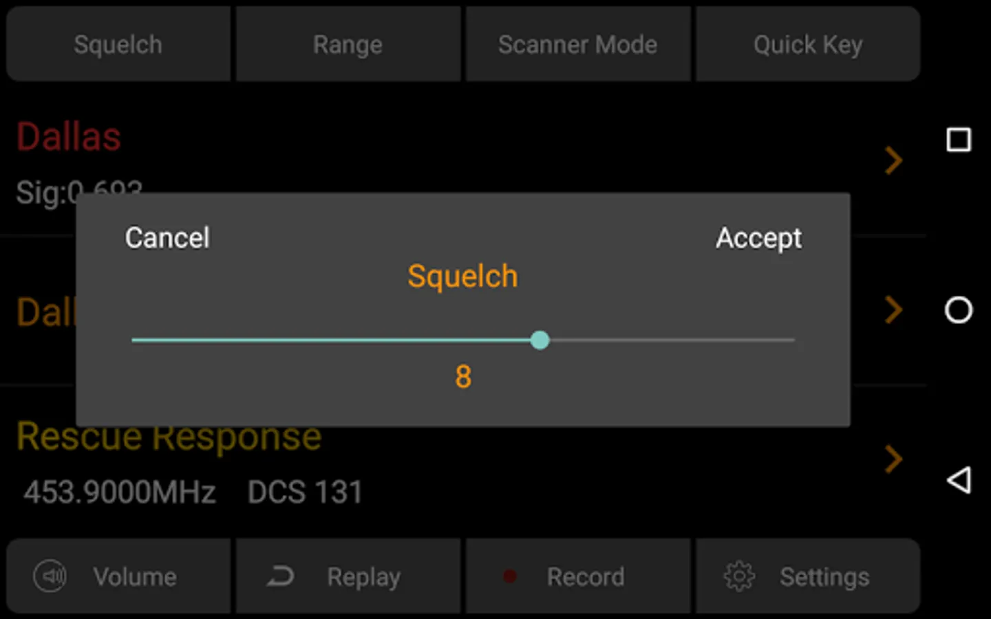 - Adjust your scanner’s squelch, volume, and range with just a few taps.