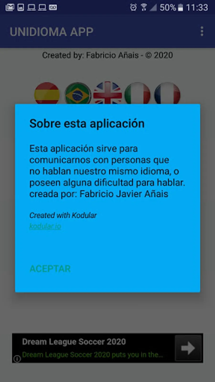 This application is used to communicate with people who do not speak the same language, or have some difficulty speaking. created by: Fabricio Javier Añais