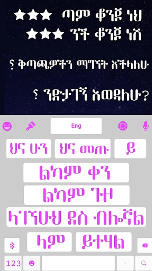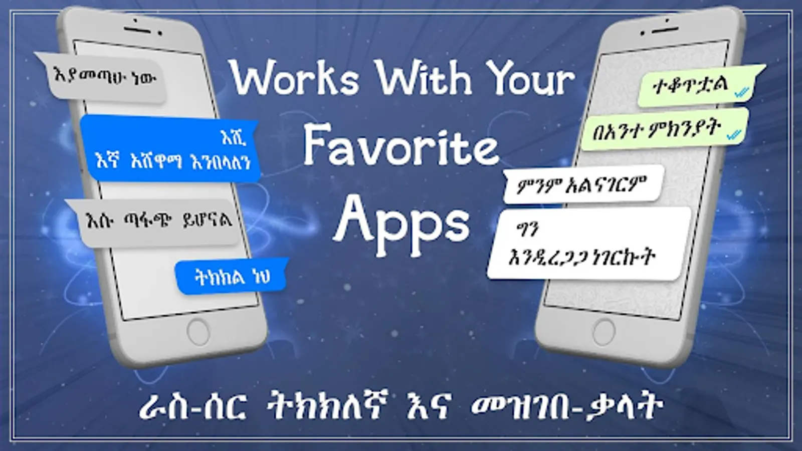 - The ethiopian language amharic and english and English can be used on all texting apps on your phone.