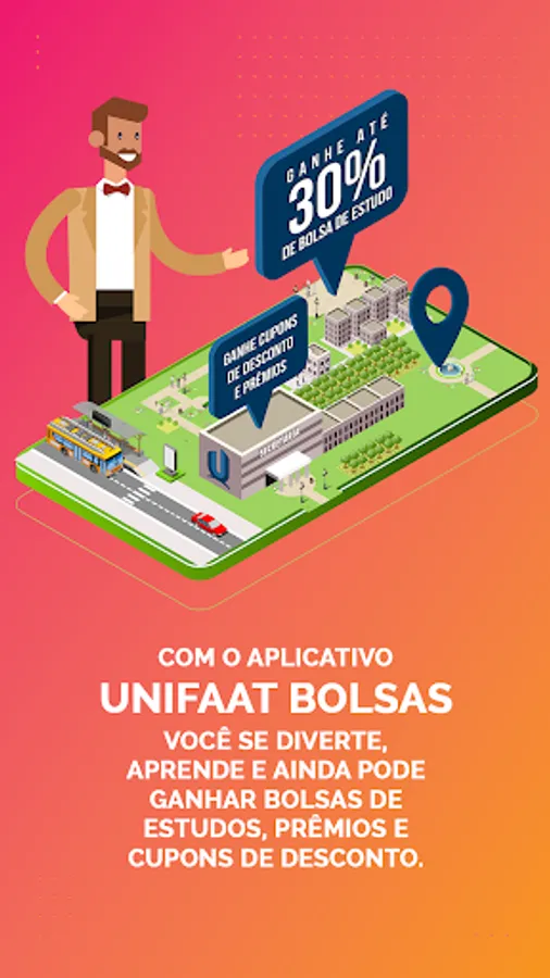 In the UNIFAAT scholarship app you will face challenges that will test your knowledge and interest in college life. In addition, the app will reward your progress, encouraging you to firmly steer toward your higher education diploma.