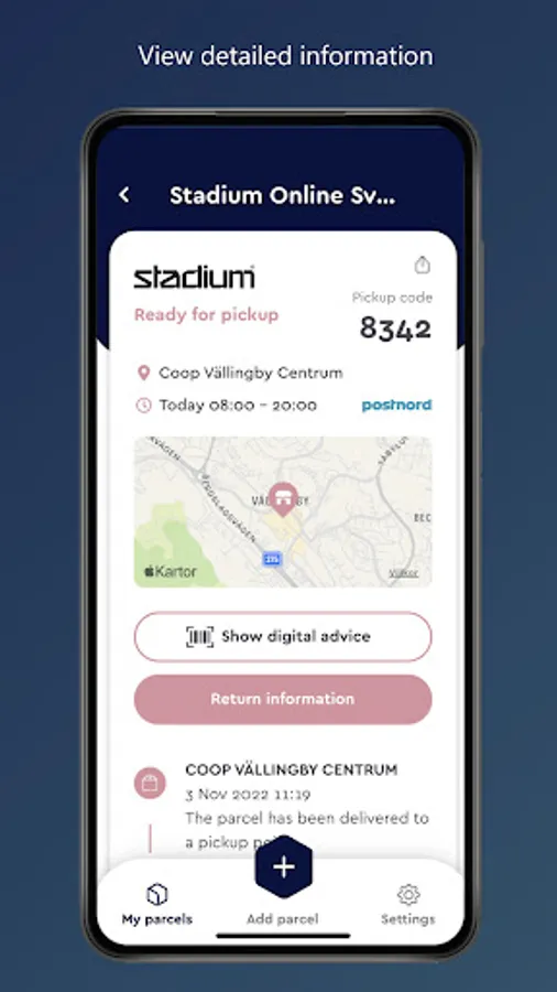 Support for many delivery services on the market: PostNord, DHL, DB Schenker, Bring, Posti, DSV, Early Bird, Premo, pinDeliver, Airmee, Budbee, Instabox, Citymail, Best, Bussgods, Matkahuolto, Kaukokiito, GLS, DPD, Dao, Helthjem, Bft, Rtc, Burd.