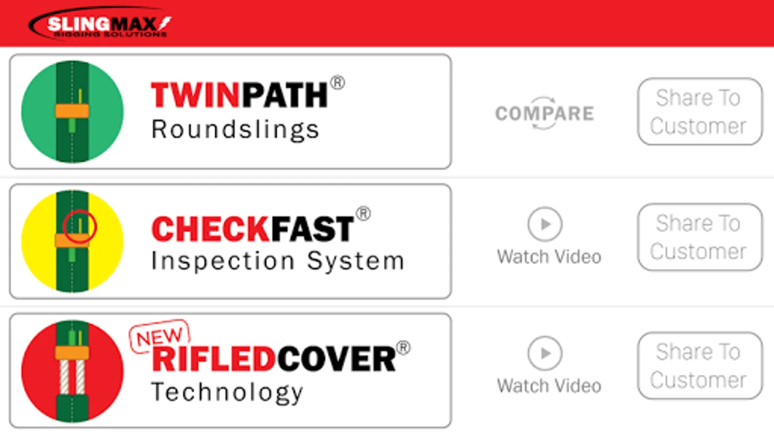 Slingmax App allows users to view videos and compare industry products with high quality Slingmax products.
