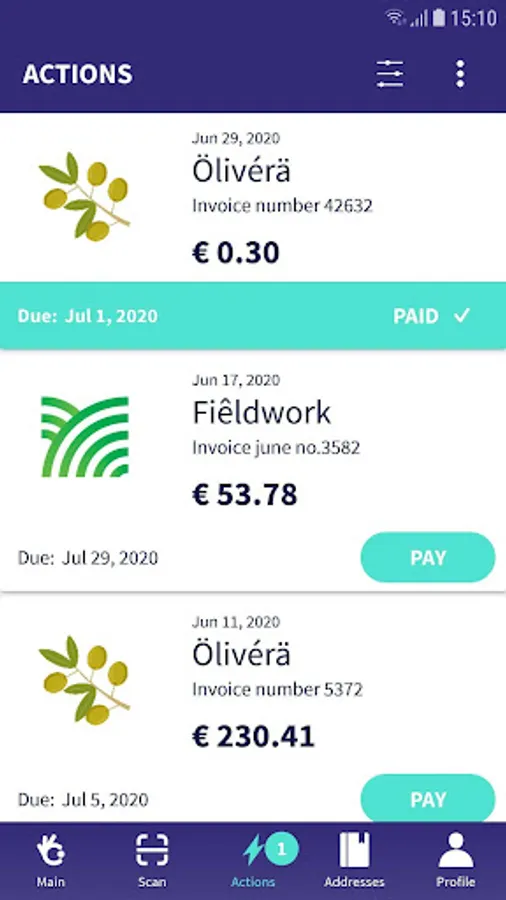 Your payment requests, invoices, contracts and other documents are usually sent to different addresses. You can see them all in one place in your app.