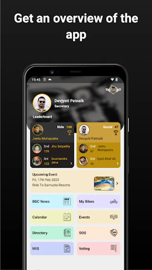 Bhubaneswar Super Bikers Club (BSC) is a biking club in Bhubaneswar comprising of the members who own a super bike and are a member of the BSC community. The BSC App provides access to members to view upcoming biking events, view complete calendar of events, add and view their bikes, access information of others members and much more.