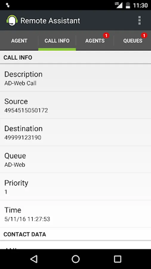 - View detailed contact information on incoming calls like source, target, queue, etc.