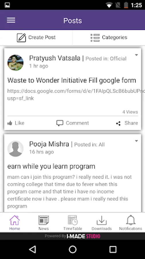 Get connected with the other students and faculty of your college through this amazing mobile app. Get latest Updates,Seminar news and whatnot through this app.