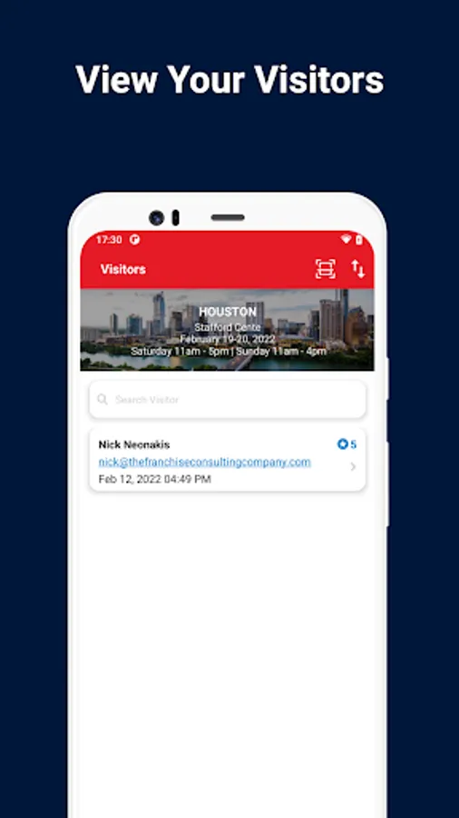 Scan Badges with QR codes - use the camera on your app device to instantly scan attendees’ badges containing their contact information.