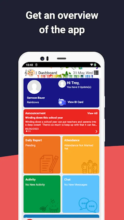 Welcome to the YCCA App. This App helps you stay informed on your child’s progress in class.
