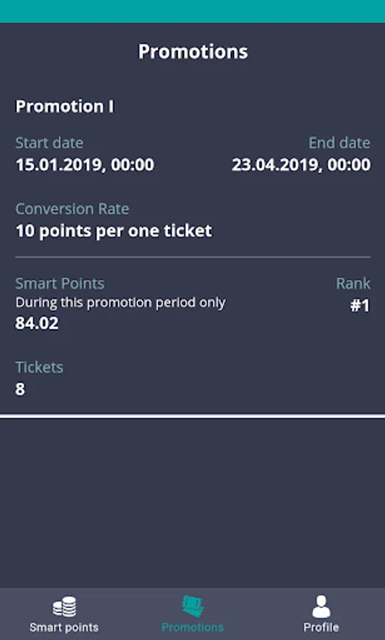 Smart Rewarding is an application in which you can see the available promotions and the points accumulated during every promotion.