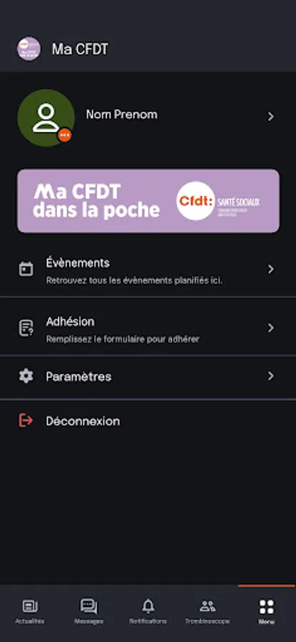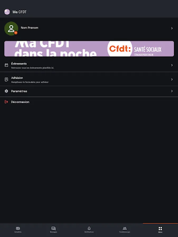 My CFDT in the pocket is the application of the Health and Social Federation which takes up federal news.