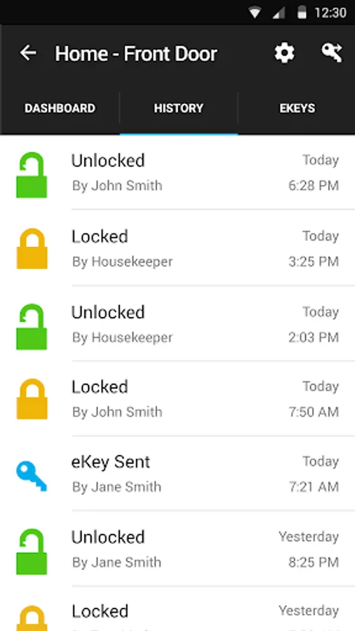 Check Kevo’s history to see lock/unlock events all users and set up notifications when they come home or leave.