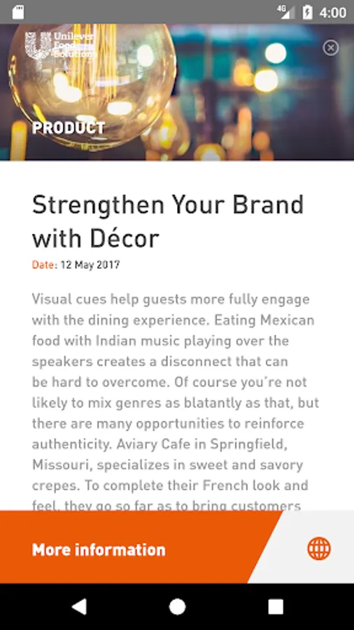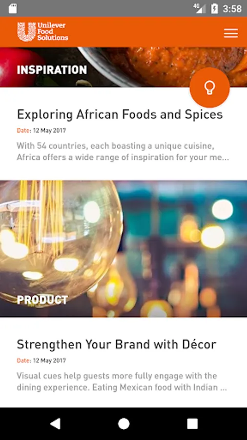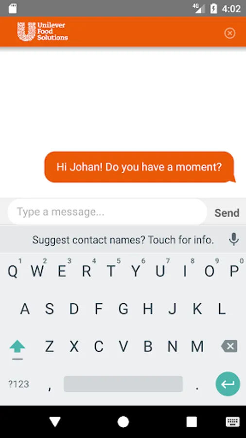 The Unilever Food Solutions CONNECT app is your direct link to Unilever Food Solutions and direct contact with a Unilever Food Solutions representative. It will keep you up to date about our products and services we provide to food professionals. Through this app you will receive updates about tailor made deals, new products, training, events and food innovations and allow you to chat 1-1 about it with us. From now on you don't have to worry about missing out and staying up to date in your profession.